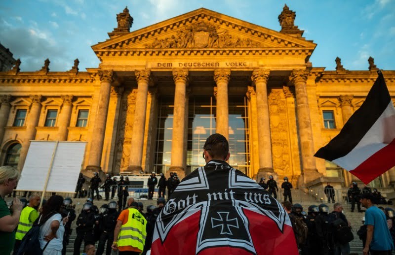 Las imágenes del sábado por la noche de centenares de manifestantes que intentaban forzar las barreras y el cordón policial para subir las escalinatas del célebre edificio del Reichstag en Berlín han impactado al país.