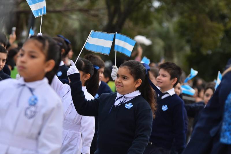 Y continuó: «La vocación por la educación, cuando recibió el premio monetario por el triunfo en la batalla de Salta, se destinó a la construcción de escuelas, que se cumplió mucho tiempo después. Y al haber creado la bandera, deja un doble mensaje para la niñez, de acceder no sólo al conocimiento sino también a los valores, como lo representa la promesa de lealtad a la bandera».