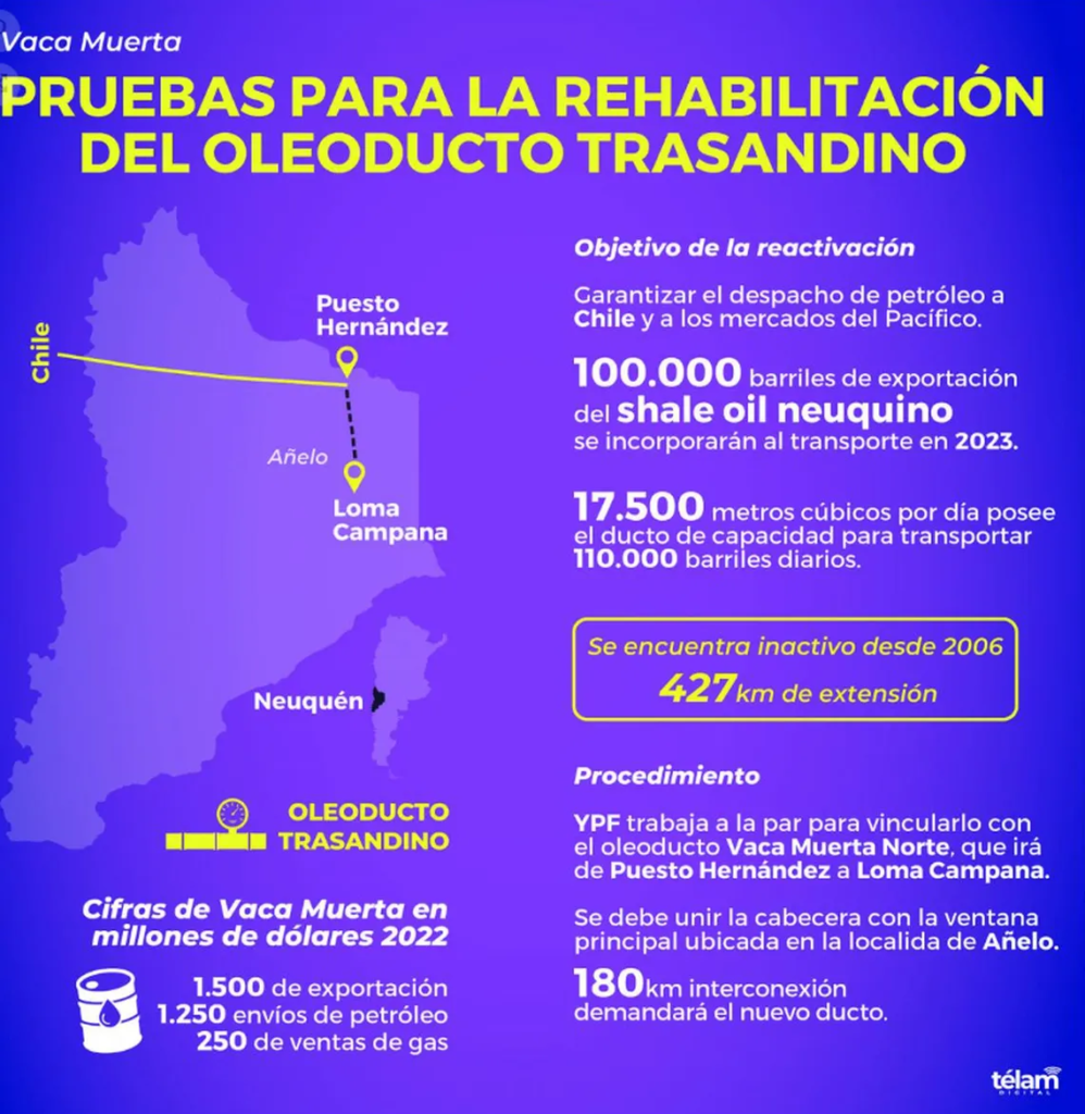 La reactivación de este proyecto -declarado estratégico por los gobiernos de Argentina y Chile-, permitirá incrementar la capacidad de transporte del petróleo incremental que se produce en la formación neuquina de Vaca Muerta.